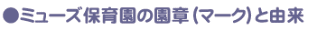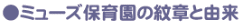 ![]() ミューズ保育園の紋章は月桂樹の葉と昇り藤の花をイメージしたもので、その葉のうえに音符でお城をイメージし、当保育園は楽しい保育園であるように、そして、いつもどこからか美しい音楽のハーモニーが奏でるように八分音符で仲良く手をつないでいるようにも見える音楽のお城になぞらえました。 |